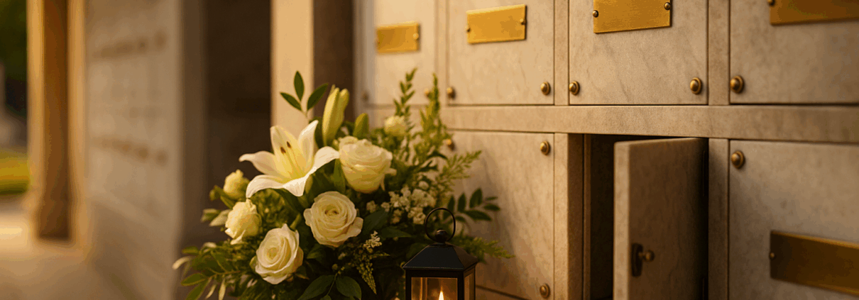 Per la tumulazione sono richieste bare conformi (legno + zinco). Ti assistiamo nella scelta del loculo e nella programmazione della cerimonia. Pianifichiamo insieme tempi e fasi (trasferimento, rito, tumulazione) per garantire ordine e rispetto.